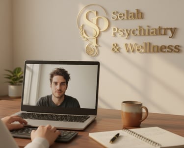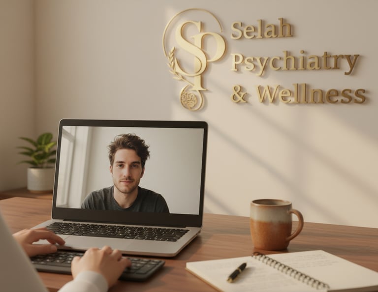 Includes: clinical evaluation, standardized scales (PHQ‑9, GAD‑7 as applicable), treatment plan, medication management, habit education and follow‑ups via telehealth or in‑person.